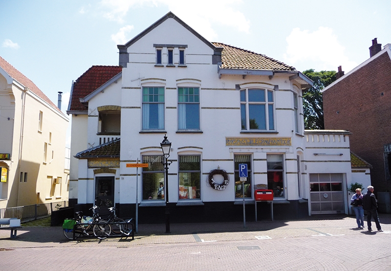 De gevel wordt gesierd door twee gave tegeltableaus met als opschrift: INGANG-PUBLIEK en RIJKSPOST en TELEGRAAFKANTOOR, vervaardigd door fabriek ‘De Utrecht’.