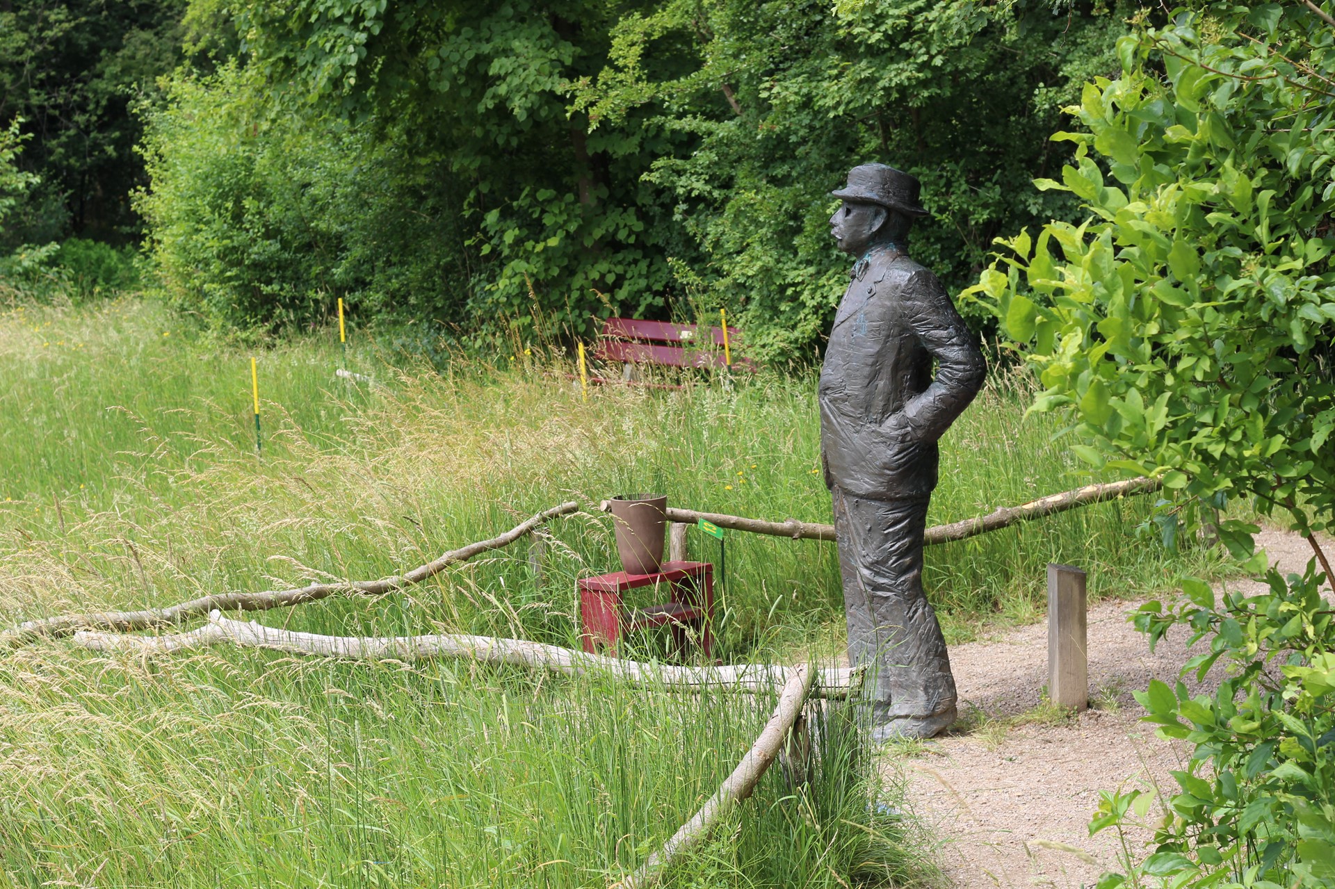 Uit het paspoort van Thijsse was zijn juiste lengte bekend en er was een serie foto’s van Thijsse in 1933 door de bekende natuurfotograaf/ornitholoog/journalist/wereldreiziger en leerling van Thijsse, Jan P. Strijbos (1891 – 1983) aan de vijver in de Hof gemaakt. Materiaal genoeg. Dus. In mei 1995 waren de ontwerpen klaar en werd een keuze gemaakt.
