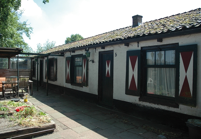 Aan de buitenzijde van de muur is een langgerekte aanbouw van een deels witgepleisterde bakstenen arbeiderswoningen, die de bijnaam ‘kippenhok’ kreeg. Thans is één woning in gebruik, onder een met rode en gesmoorde pannen gedekt lessenaarsdak. Op de nok een luidbel.